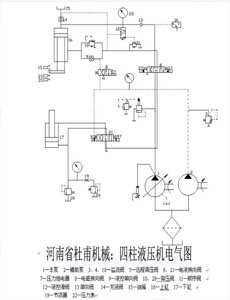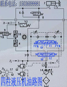 四柱液壓機由主機及控制機構兩大部分組成。液壓機主機部分包括液壓缸、 橫梁、立柱及充液裝置等。動力機構由油箱、高壓泵、控制系統(tǒng)、電動機、壓力 閥、方向閥等組成。