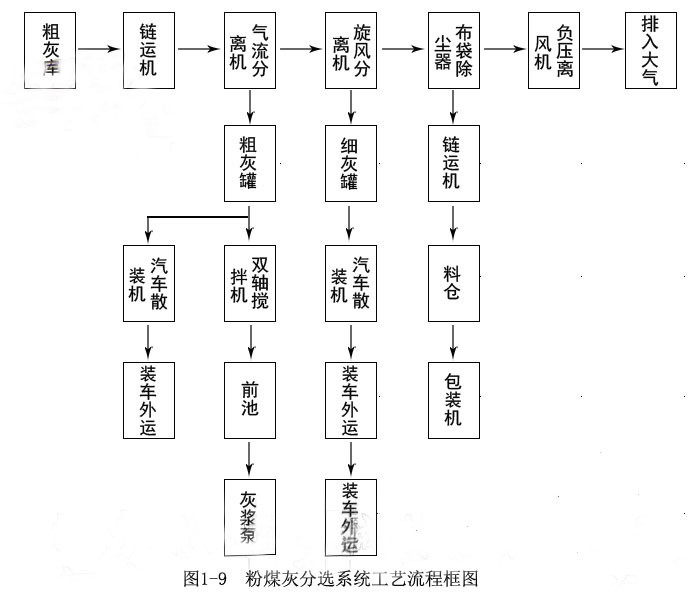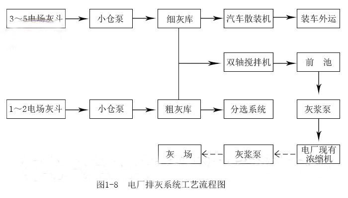 新增設施年排粉煤灰約20×104t,用電收塵器收集干灰。電收塵器計有5個電場,其中1、2電場主要出粗灰,3、4、5電場主要出細灰。電力主管部門和國家環保部門要求該廠的粉煤灰全部綜合利用。該廠已與有關企業簽訂供灰合同,根據合同要求,電廠必須對粉煤灰進行分選,分別供應符合“GB1596-91”《用于水泥和混凝土的粉煤灰》所要求的一級灰、二級灰和粗灰。為此,該廠設置了兩個系統: