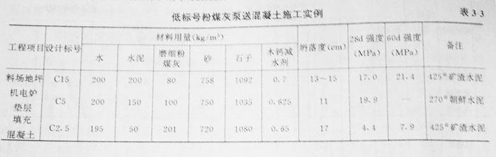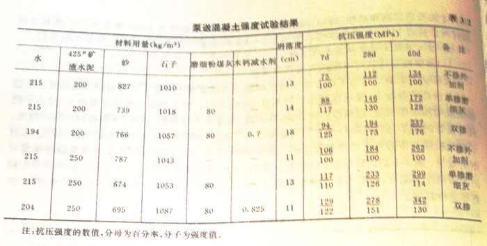 可泵性主要決定于混凝土與管壁之間的摩擦力。由于低標號混凝土的水泥用量少,可泵性差,因此,過去規定C15以下的混凝土不得泵送??墒菗饺绶勖夯液蜏p水機劑后,可使混凝土在不增加水泥的情況下仍能獲得良好的可泵性。在寶電工程中,C2.5、C5和C15的混凝土在300m水平硬管輸送時也沒有發生堵塞現在。表3—3是低標號粉煤灰泵送混凝土的施工實例。
